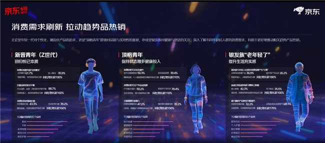 这个京东618,35-45岁的顶格青年,在消费表现上则聚焦于“保持状态增多更多健康投入”,会更加关注自身的健康管理、