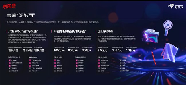 这个京东618,京喜自营“厂货百补”计划带动了很多产业带日用百货产品的热销,其中,产业带纸品订单量超1000万,产业带厨具订单量超805万,产业带服饰订单量超360万。